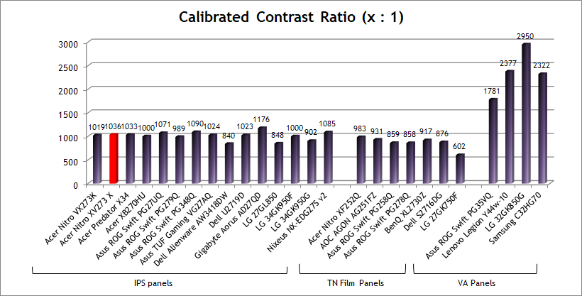 We have provided a comparison of the display against many other gaming screens we have reviewed in a similar size range and across a range of panel technologies. This table is now split by panel technology to make life a bit easier and for quicker comparison. The XV273 X was the fastest overall IPS panel we have measured to date which was excellent news. With a 4.8ms G2G average it matched the recently tested LG 27GL850 which had been really impressive in this area as well. That LG screen could "only" support up to 144Hz refresh rate and so there is a fairly decent jump here on the XV273 X when it comes to frame rate support (up to 240Hz) as well as some reasonable improvements in motion clarity as a result. At 240Hz the XV273 X was also completely free from any overshoot, whereas the LG 27GL850 showed a little on some transitions. A very impressive gaming performance from the XV273 X when you consider the high refresh rate, fast response times and absence of overshoot.
