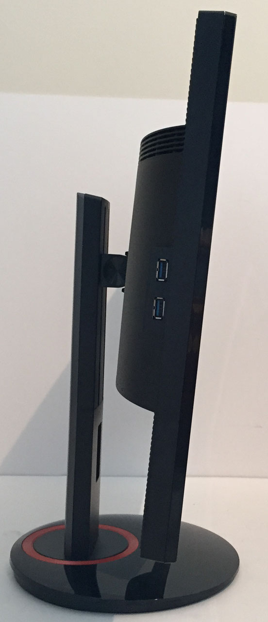 The screen has an internal power supply but comes packaged with the power cable you need. There are also 4x USB 3.0 ports, 2 located on the bottom edge of the back section next to the video and power connections and 2 on the left hand side of the screen. The top of the two on the side has charging capabilities as well. There are no additional extras such as integrated speakers, card readers, ambient light sensors or human motion sensors provided as those are more aimed at office uses, while this is primarily a gaming screen.