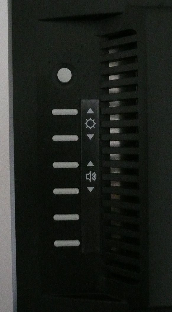 of the bottom bezel, again like Apple's screen. There is a small subtle LED in