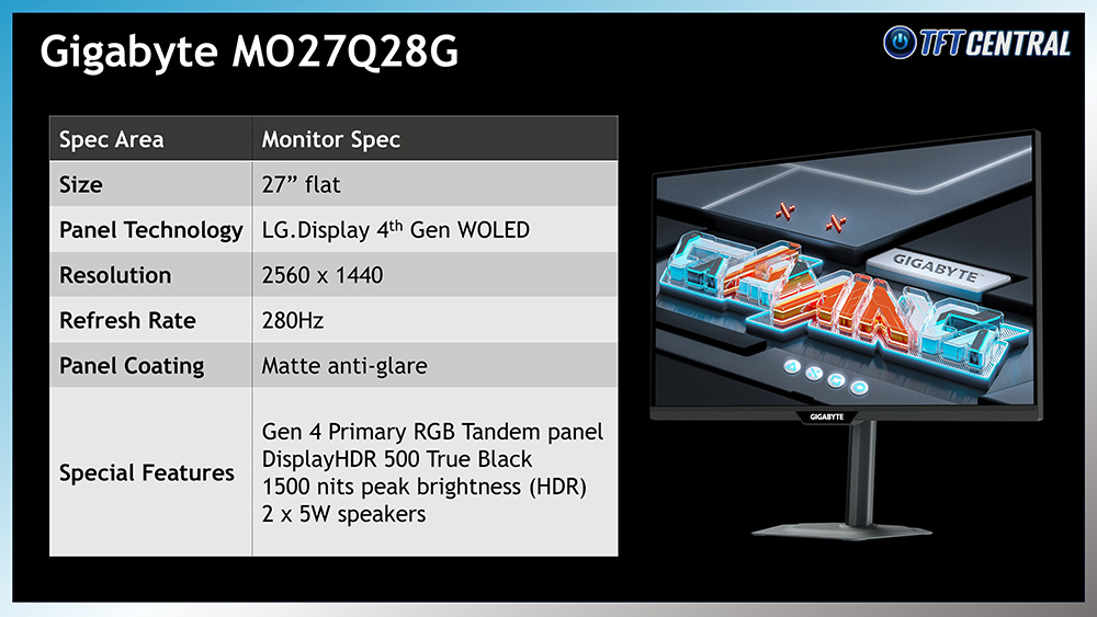 That brings us nicely on to the Gigabyte MO27Q28G, the first monitor to be announced this year that will feature a new 4th Gen Primary RGB Tandem WOLED panel. We expecting the screen to arrive with us in the near future for a full review, so stay tuned for that. You can find some coverage of this monitor when it was announced at Computex in May 2025 in our video here.