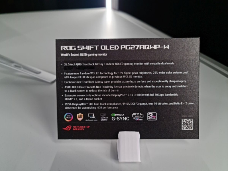 The ROG Swift PG27AQWP-W is due to be released in Q4, maybe even as early as October we were told, but we will provide any firmer information when we get it. Pricing is still to be confirmed. We look forward to getting our hands on one of these screens in the coming months, so please look out for our review on the site in the future.