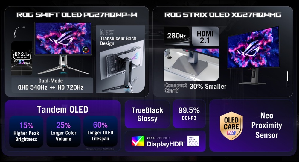 Like the ROG Swift PG27AQWP-W this features Tandem OLED technology and TrueBlack Glossy coating which are discussed in this article earlier, so we won’t repeat the same thing again here. It also comes with the built-in Asus OLED Care Pro technology and Neo-Proximity Sensor.