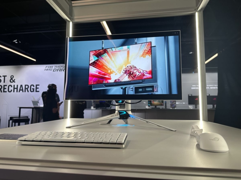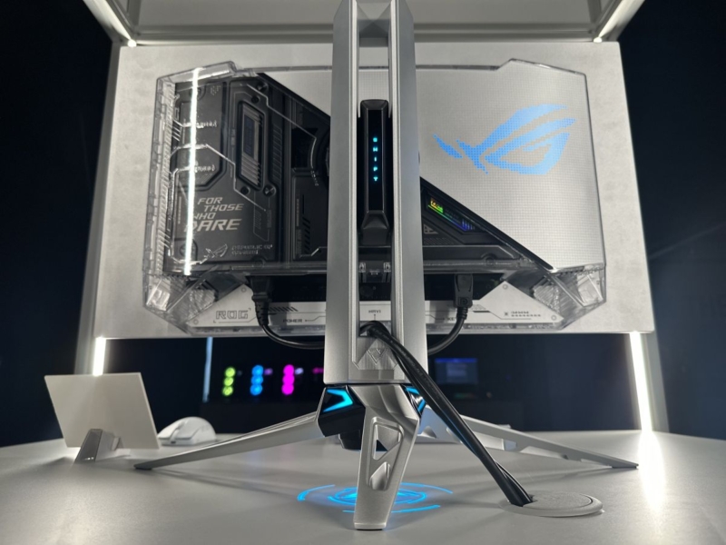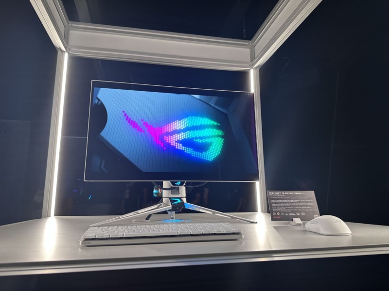 We thought this looked really nice at the event, a welcome change from the common and long-standing black ROG Swift monitor design, and a sleek and modern look for this top-tier monitor. We’ve asked Asus if there are any plans to produce a black version as well, and will report back if we get any further information.