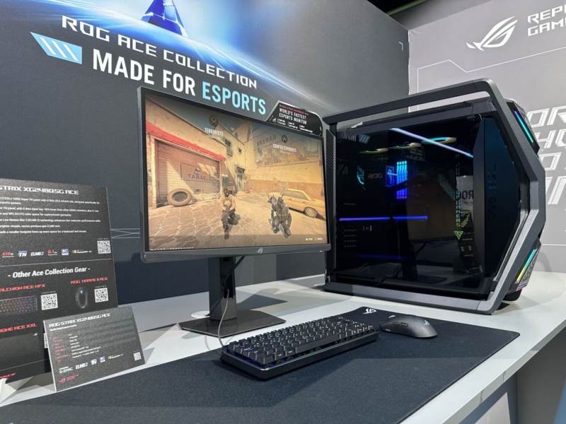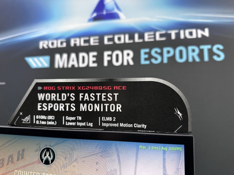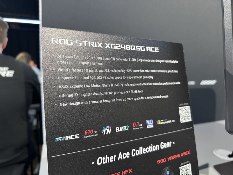 The only non-OLED gaming monitor being showcased at Gamescom was a model we first saw announced at Computex in May. The ROG Strix XG248QSG ACE is a smaller format 24.1″ sized screen aimed at professional and esports gamers. It’s built around a ‘Super TN’ Film LCD panel with a 1920 x 1080 resolution that is still popular in that niche, with a massive 610Hz refresh rate. A range of added gaming features and blur reduction technologies make this an attractive option for competitive gamers, and it’s even being used as the monitor for all competitors across the upcoming Counter-Strike:Blast events during the coming months.