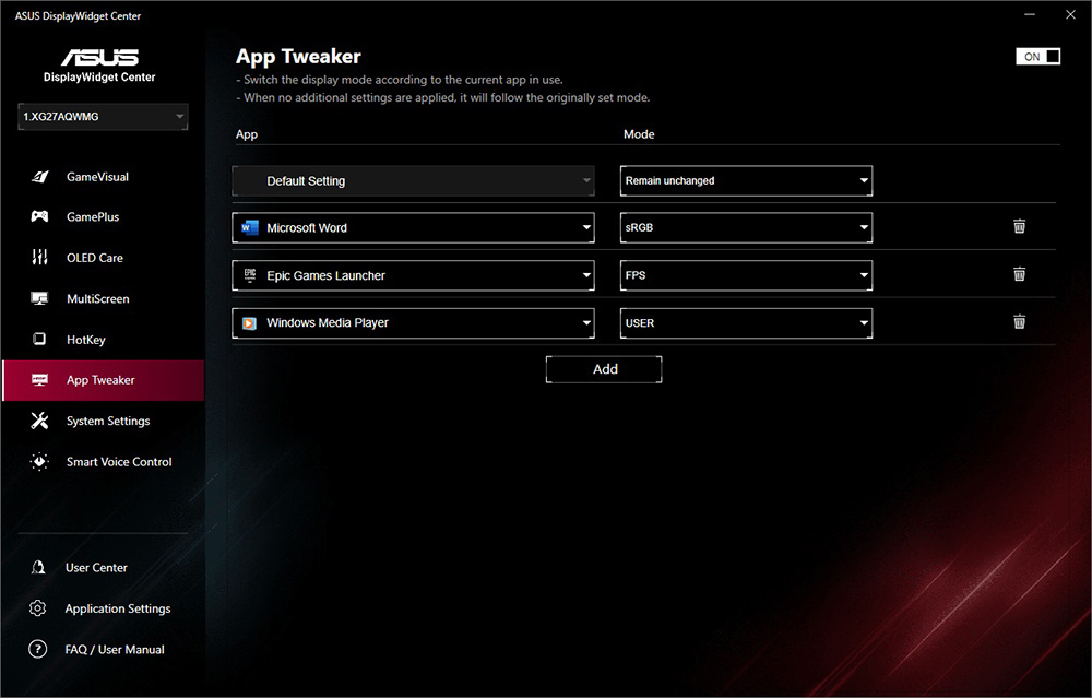 - ‘App Tweaker’ lets you define different presets, settings and modes per app or per game, so it will intelligently switch automatically for you as your usage and content changes – explained below