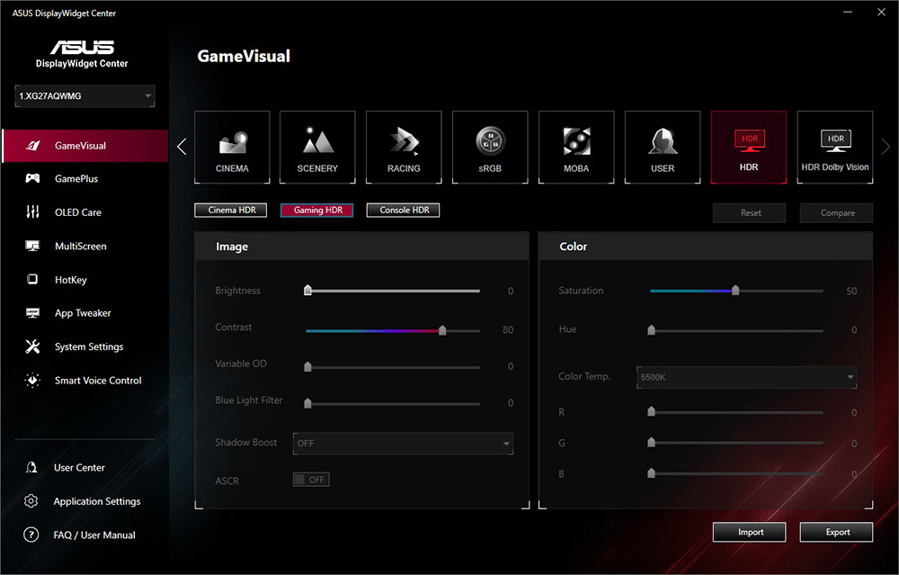 On some screens there isn’t full control over the HDR settings though, for instance on screens where there’s an ‘Adjustable HDR’ mode it doesn’t seem to control those fully. You may need to use the on-screen menu instead for now if your model supports those options while Asus explore how these additional settings can be integrated.