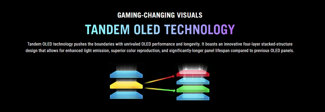 Last but not least is the ROG Strix OLED XG27AQWMG. Despite the affordable price point this model even features the latest 4th Gen Tandem WOLED panel technology so expect a step-up in specs and capabilities compared with the other models. The Tandem WOLED panel offers higher brightness, better colours and improved ambient light handling and blacks.