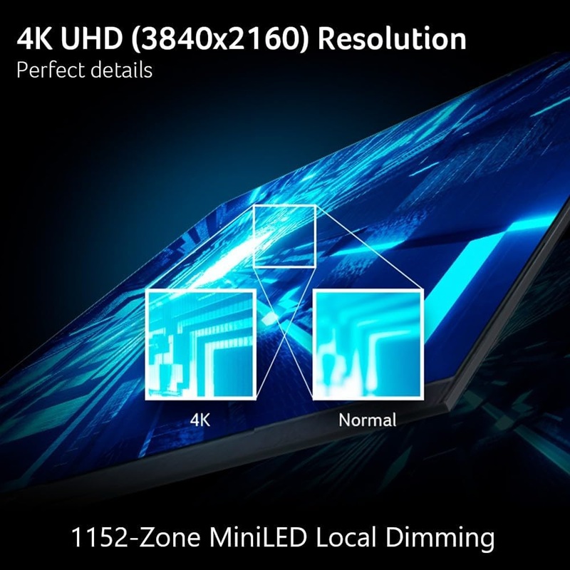 The 1,152-zone Mini LED backlight provides high-end LCD HDR capabilities, as well as certification under the VESA DisplayHDR 1000 tier, offering a peak brightness of 1000 nits. Although there does not appear to be an official product page for this model yet, Amazon (affiliate link) have listed it on their website as having a glossy screen coating which is unusual in an LCD panel.