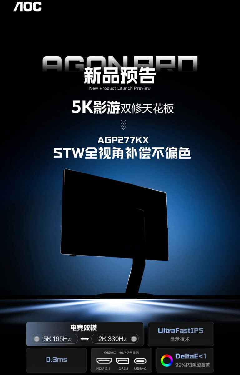 AOC AGON PRO AGP277KX Teased with 5K Dual-Mode IPS Panel