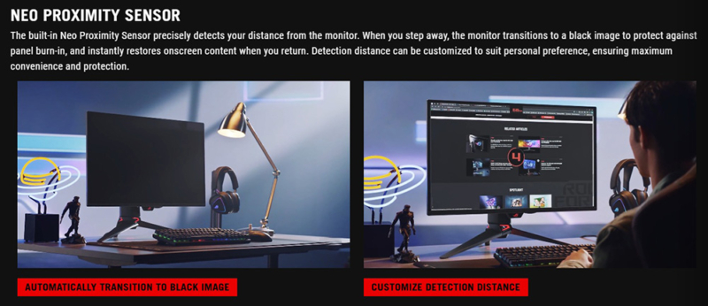 Another update from the original PG32UCDM is a shift to Asus’ ‘OLED Care Pro’ feature set, including loads of additional settings and their Neo Proximity motion Sensor.
