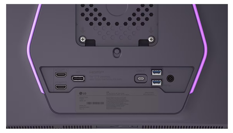 For connectivity there are 2x HDMI 2.1 ports, 1x DisplayPort 2.1 input (UHBR tier not listed) and a 4-pole sound and mic jack. In addition there are 2x USB 3.0 Type-A connections and 1x USB 3.2 Type-C connection (with DP Alt Mode). The screen also offers PiP/PbP support for handling multiple devices.