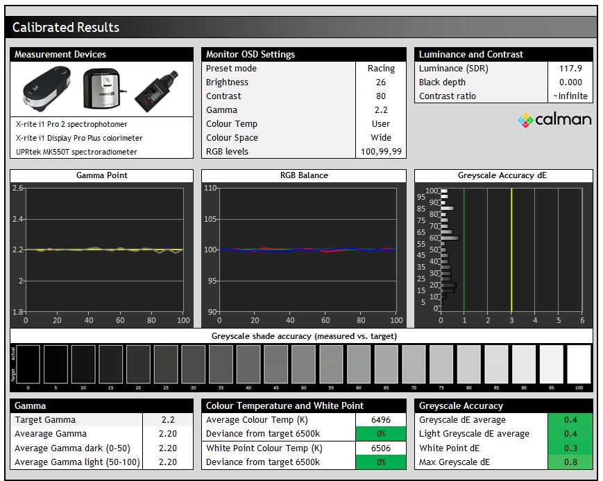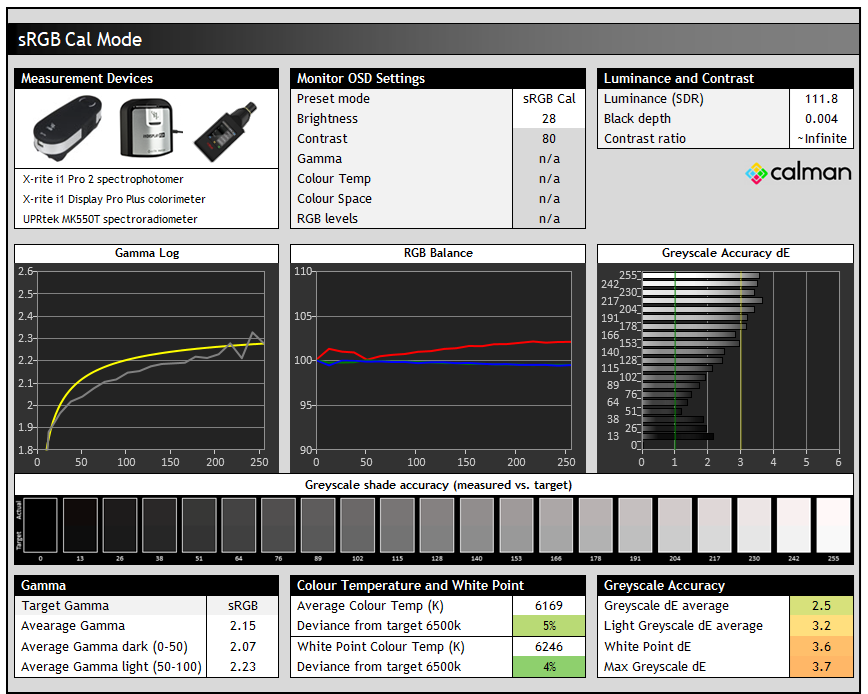 We’ve already measured the peak white luminance of the screen above, and then delved in to the luminance of the greyscale which has a direct impact on mid tones and overall image brightness during real use. We have also included our additional tests below based on our new testing methodology explained in our detailed article here. These tests are designed to include measurements of colour brightness, based on measurements of RGBCMY colours. For colours, the greyscale measurements earlier will also be relevant to account for all those mid-tones and different shades of colours.