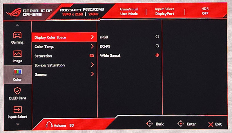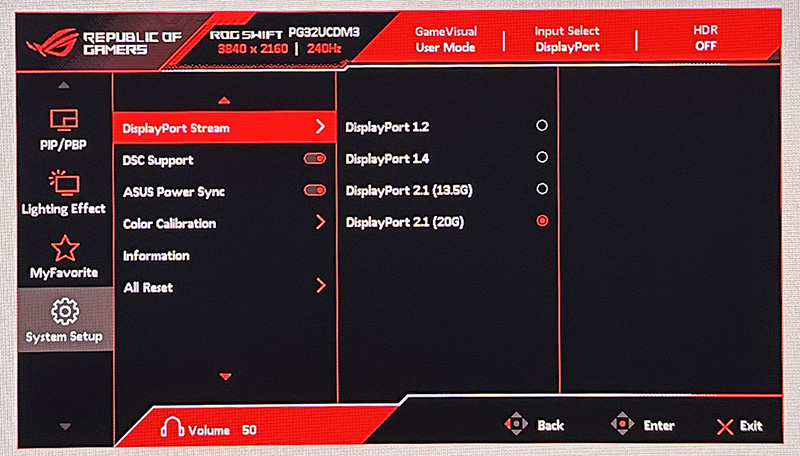 With DP 2.1 (UHBR 20) available, the screen can be powered at its full spec (4K 240Hz, 10-bit) without needing to use DSC if you have a compatible graphics card, such as an RTX 50 series. DSC can be disabled from the OSD menu if you wish, although there’s very little practical benefit in doing so to be honest. Older systems with DP 1.4 connections will use DSC to power the full spec. If you were to disable DSC you’d be limited to 97Hz refresh rate for 4K, 10-bit.
