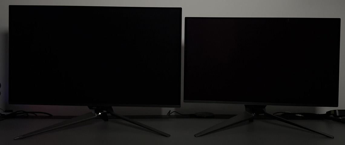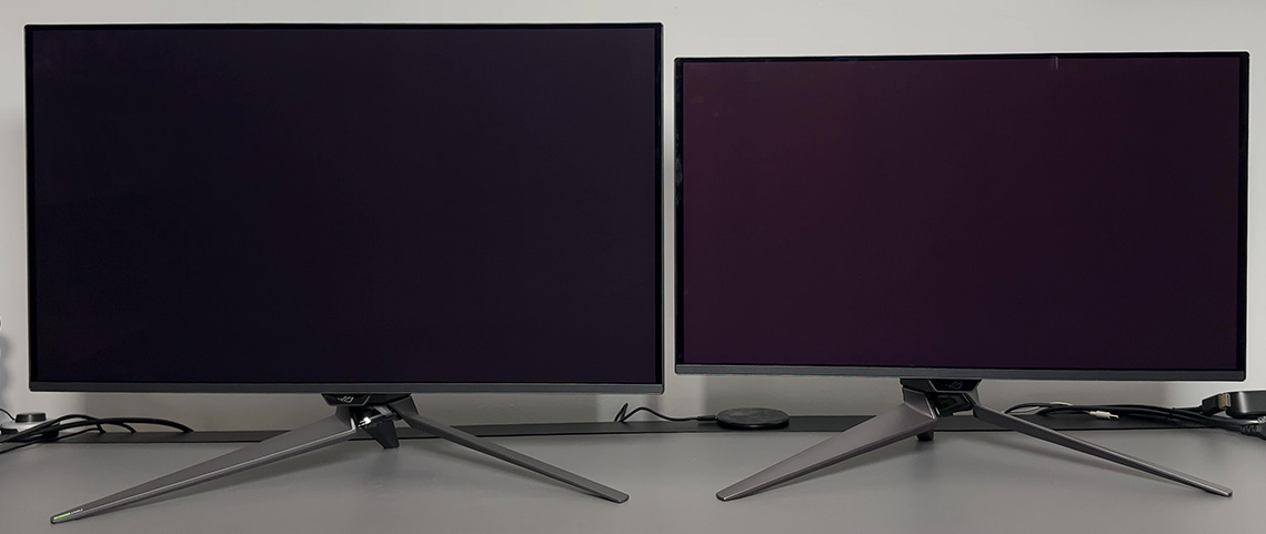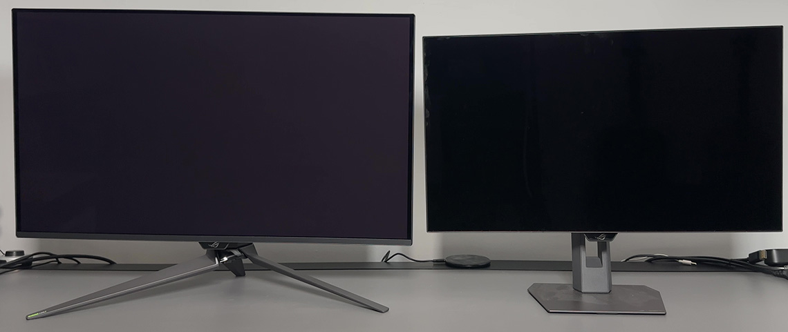 ROG Swift PG32UCDM3 (left) vs ROG Strix XG27AQWMG (right)