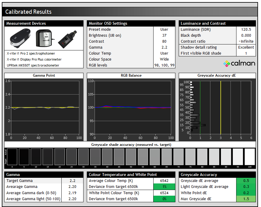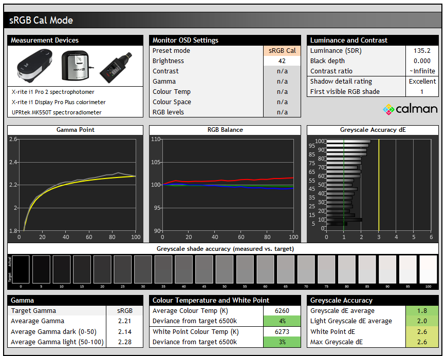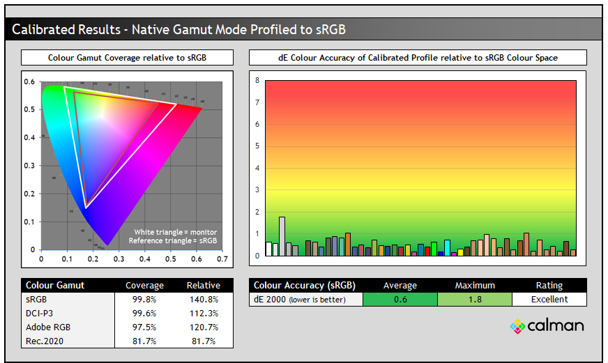 | Calibrated (with ICC profile active) | Excellent (1) |