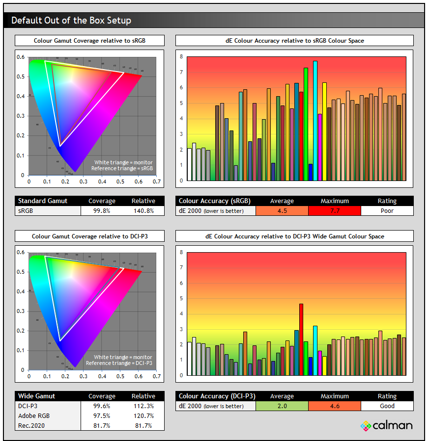 Accuracy was very good for general usage and there’s a good range of emulation modes and options available. We’d have loved to have seen Samsung Display’s updated RGB-stripe pixel layout too, but text clarity is already very good to be honest on this high pixel density panel.