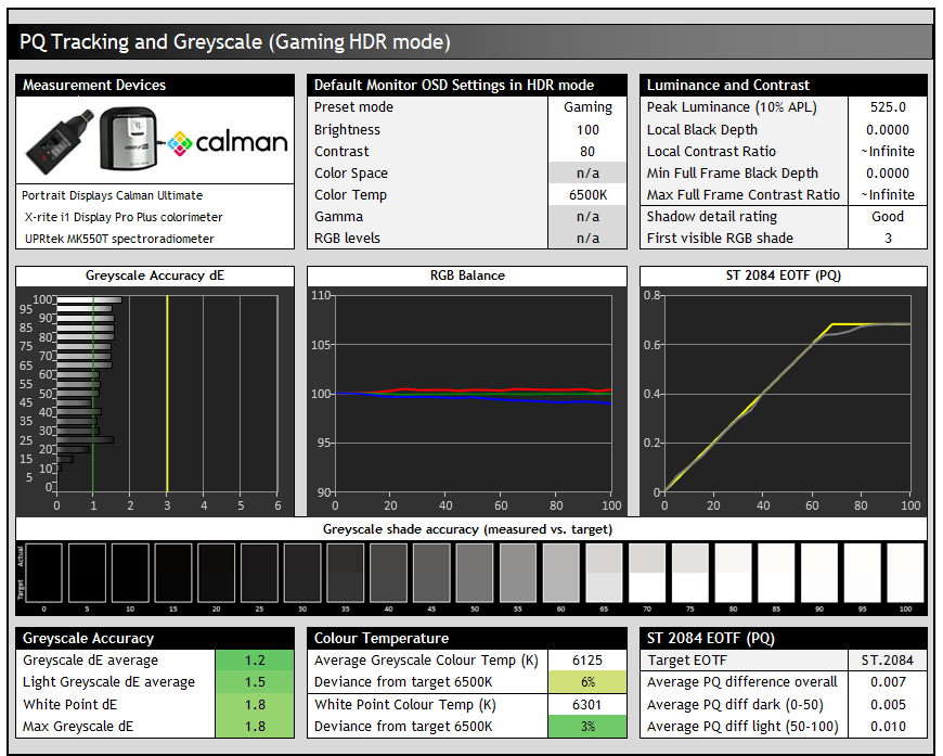 We measured up to an 11% improvement in black luminance using our previous measurement approach. Note that Asus talk about a 40% improvement in perceived black depth, and we’re exploring how this is calculated in case we can measure this ourselves in the future.