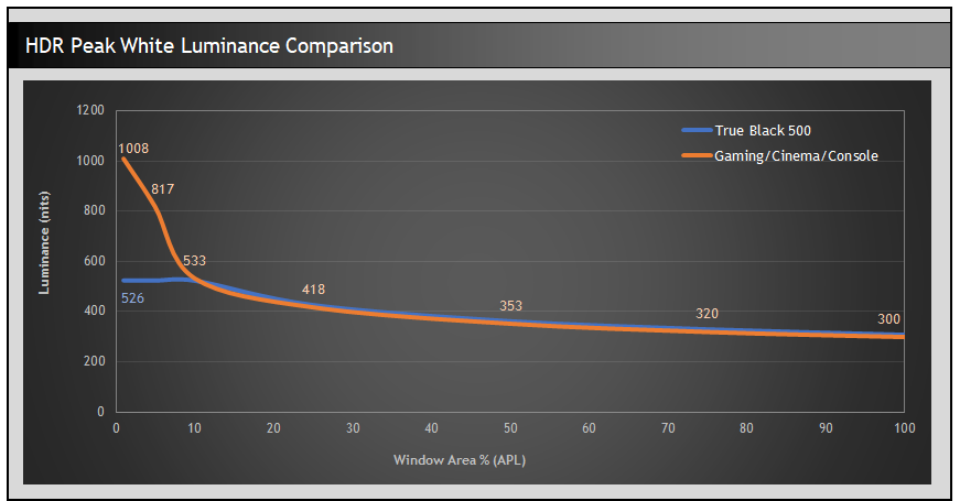 - VESA DisplayHDR 500 True Black certification, with 1000 nits peak brightness spec