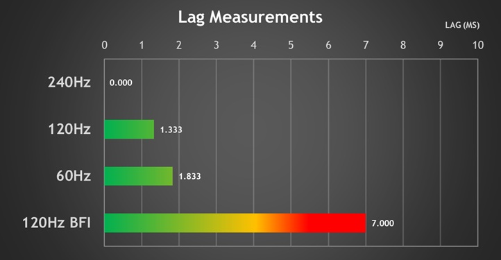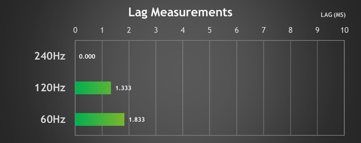 - Class 2) A lag of 4.17 – 8.33ms – the equivalent of one to two frames at a 240Hz refresh rate – moderate lag but should be fine for many gamers. Caution advised for serious gaming