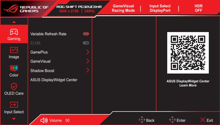 Competitive gamers may see further benefits with motion clarity in looking at faster refresh rates, but at the moment all the 4K resolution OLED monitors max out at 240Hz (at their native res) and so the PG32UCDM3 is in keeping with all of those models. Higher refresh rates would also offer improvements with end to end system latency and frame rate support.