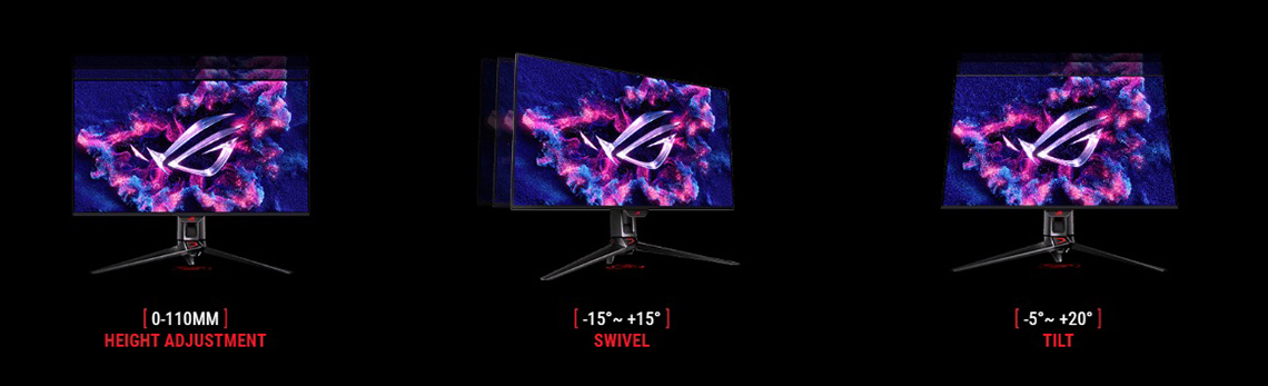 - Adjustable stand with tilt, height and swivel (no rotate)