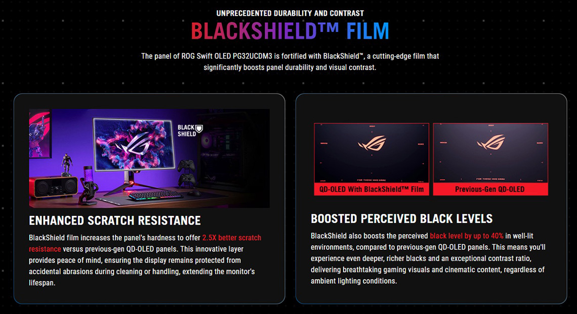 This new BlackShield Film is designed to help address two areas that have been problematic on QD-OLED panels before.
