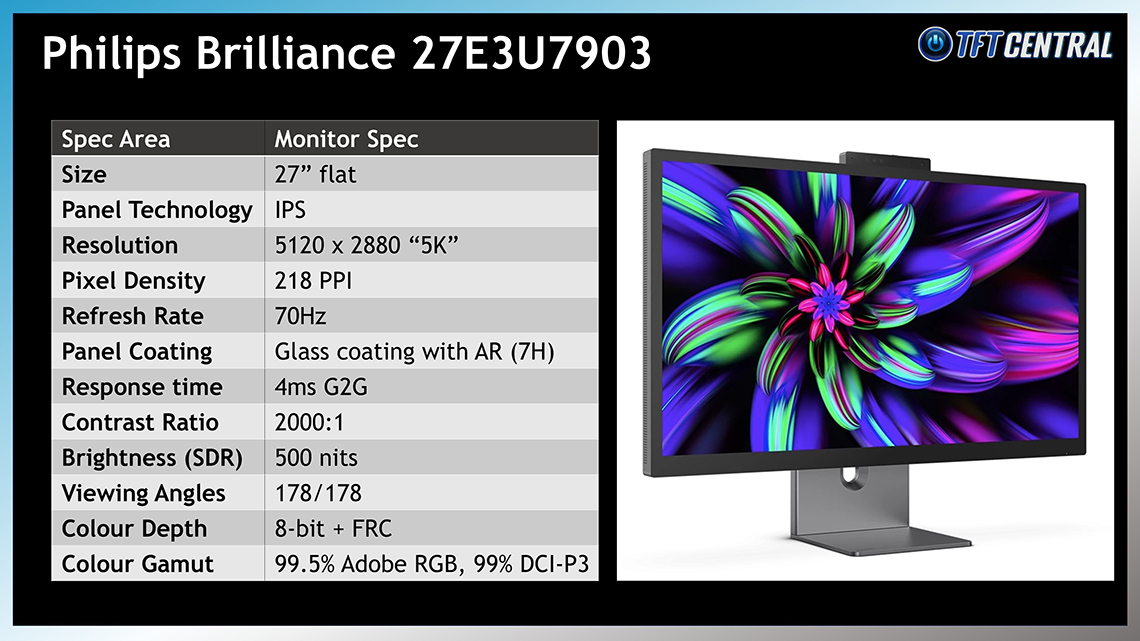 Philips have recently announced a new monitor in their ‘Brilliance’ product line-up, a model aimed at professional and office users who are looking for a super-high resolution and pixel density panel, along with a wide range of modern productivity-enhancing features. The 27E3U7903 is a 27″ sized screen built around an IPS-type LCD panel, offering a 5120 x 2880 “5K” resolution, a significant step up from the wide range of “4K” (3840 x 2160) resolution monitors you see in the market. We’ll talk a lot more about the benefits and importance of this resolution in a moment, including why it’s so highly sought-after by Apple Mac users especially.