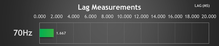 Lag was measured at ~1.667ms total which can pretty much all be accounted for by pixel response times, suggesting a near-zero signal processing lag which is excellent.
