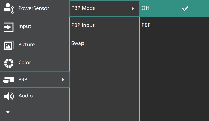 - Smart KVM function, PiP/PbP support, PowerSensor 2 motion sensor
