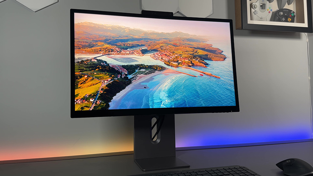 Speaking of the design, its minimalist and professional and (perhaps not so coincidentally) very similar in appearance to Apple’s 27″ 5K Studio Display. The stand is versatile and there’s a good range of modern connectivity options including Thunderbolt 4, USB-C data and HDMI 2.1, along with various other USB, Ethernet and audio ports. We’d have liked to have seen a separate DisplayPort connection available for simpler PC connectivity though without needing to use up the Thunderbolt/USB type-C input for that.