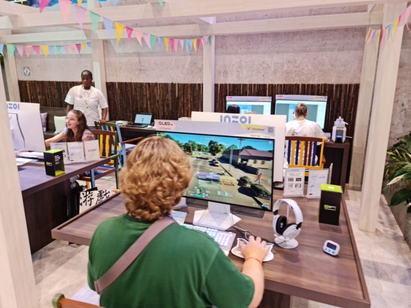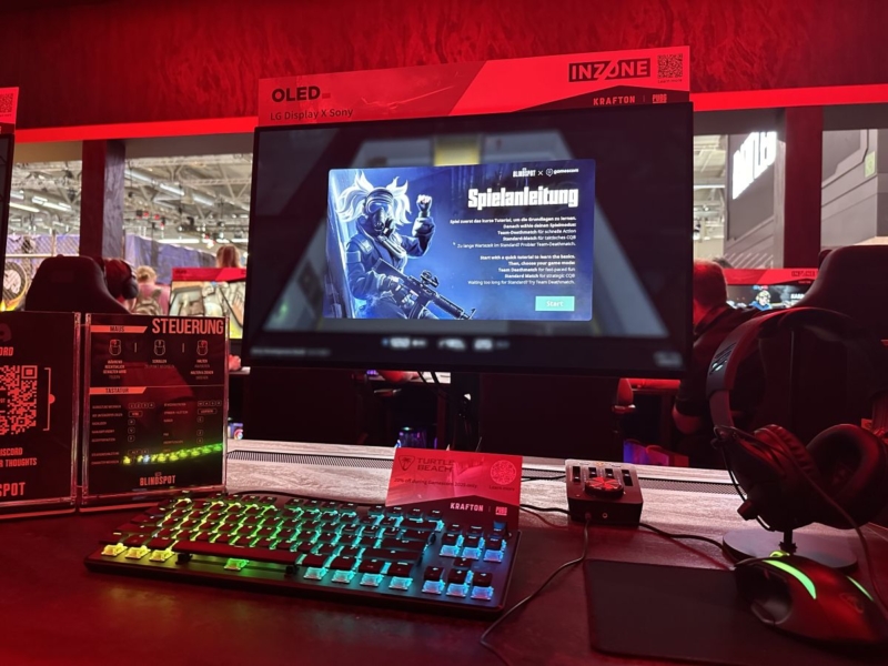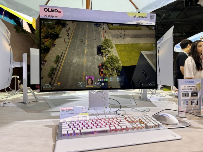 At Gamescom there were a wide range of WOLED monitors being used across various booths, especially at Krafton where two distinct zones were set up. In the InZOI area they were using the LG 32GS95UE for people to test out this life-simulation game. It’s a 32″ sized screen with a high pixel density, a 3840 x 2160 “4K” resolution and a 240Hz refresh rate. This helps provide a sharp, detailed and crisp image for slower-paced games.