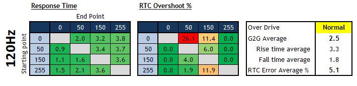 Response times are excellent overall and with low levels overshoot in the 'normal' setting. This includes at 60Hz for external devices |