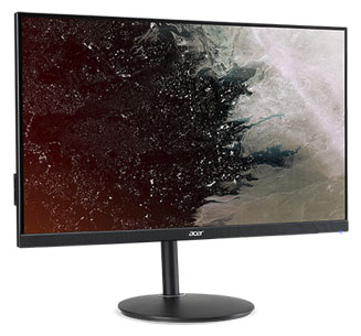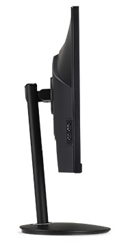 The XF252Q comes in a black design with matte plastics used for the bezel and rear enclosure. There is 3 side borderless design with a very thin 2mm plastic trim around the sides and top. There is also a further 4.5mm black panel edge, giving a total border of 6.5mm along the sides and top. The bottom bezel has a textured pattern to it and is thicker at 20mm, with an additional 1mm black panel edge (21mm in total). There is a shiny silver 'acer' logo in the middle of the bottom bezel and a small power LED in the bottom right hand corner that glows blue during normal operation.