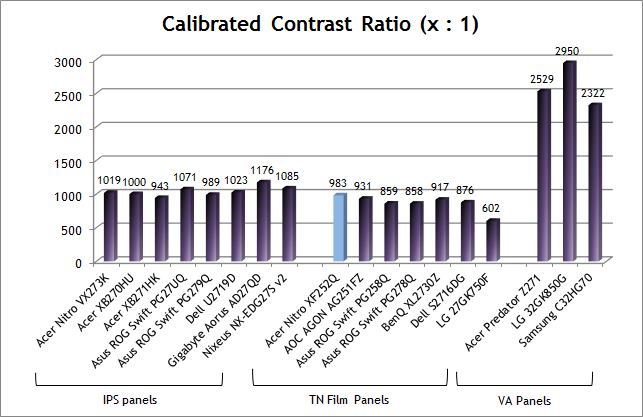 Good TN Film contrast ratio which should be fine for most content. Buying an alternative VA technology panel would provide you a higher contrast ratio if you watch a lot of dark content and miss some shadow detail |