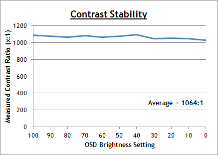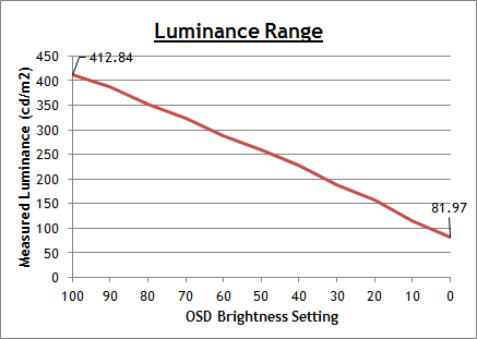 Good adjustment range offered including a higher peak brightness than many screens. Flicker free backlight operation with no PWM |