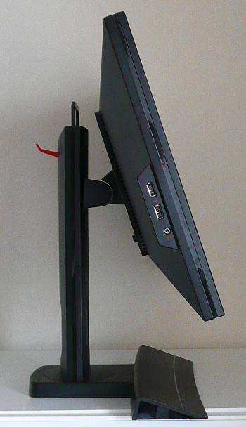 Viewing angles are restrictive unfortunately, due to the use of TN Film panel technology. Contrast shifts are pretty obvious and may prove a problem if you're trying to watch the screen from different angles or with other people.