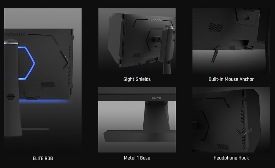 Native G-sync, Adaptive-sync support over DP (FreeSync), 2x 2W stereo speakers, Elite RGB lighting, provided Elite shading hood, ULMB blur reduction