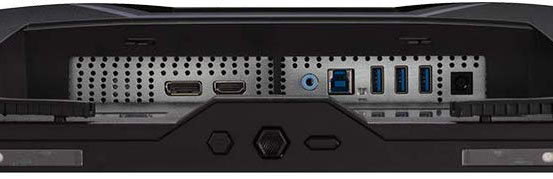The XG270QG offers a somewhat limited range of modern connectivity with 1x DisplayPort 1.2a and 1 x HDMI 1.4 offered for video connections. This is restricted by the user of the G-sync v1 module. These are located on the back of the screen along with a headphone output and 3x USB downstream ports. For PC connectivity the DisplayPort is the most common option, with HDMI being available then for connecting external games consoles or Blu-ray players potentially. The screen has a small external power supply brick and the screen also comes packaged with the power cable that you need.