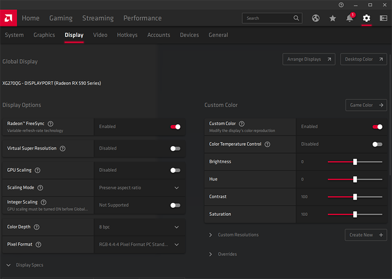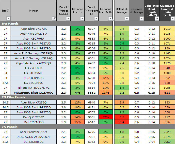 Being a Native G-sync screen has a few disadvantages though. There was no sRGB emulation mode offered and so while the wide DCI-P3 gamut is great for games and multimedia, it might not be as suited to colour critical work if you need to work in the more common sRGB colour space. There was also limited connectivity options available with only 1x DisplayPort and 1x HDMI. Having said that, the XG270QG does pack in a decent range of extras including an often-popular RGB lighting system, various gaming modes and settings, a fully adjustable stand and things like the provided shading hood and headphone holder clip. The IPS panel offered great all round performance with good image quality, wide viewing angles and impressive colours. The contrast ratio was unfortunately mediocre as we've seen from the other Nano IPS panels tested so far.